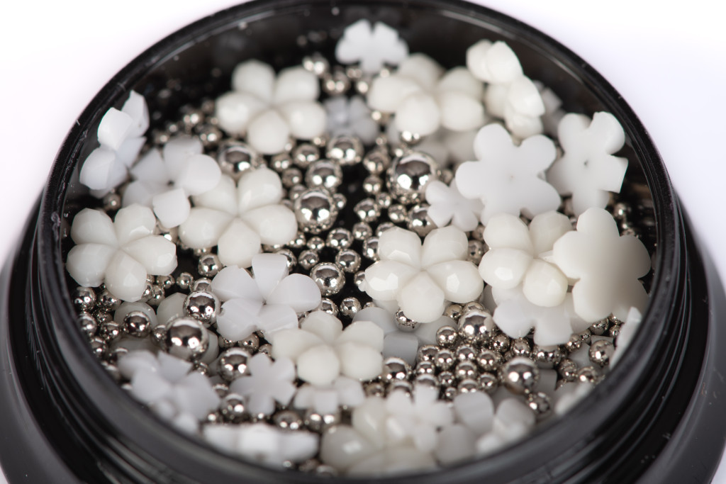 This decorative mix of pearls and flowers adds an extra touch of elegance and style to your nails.